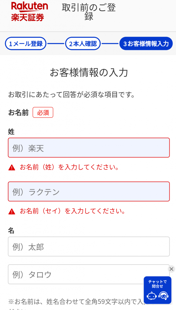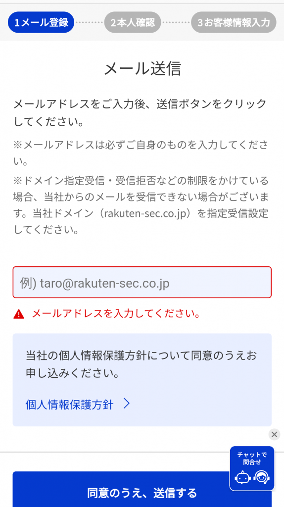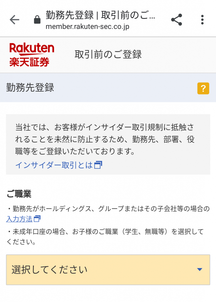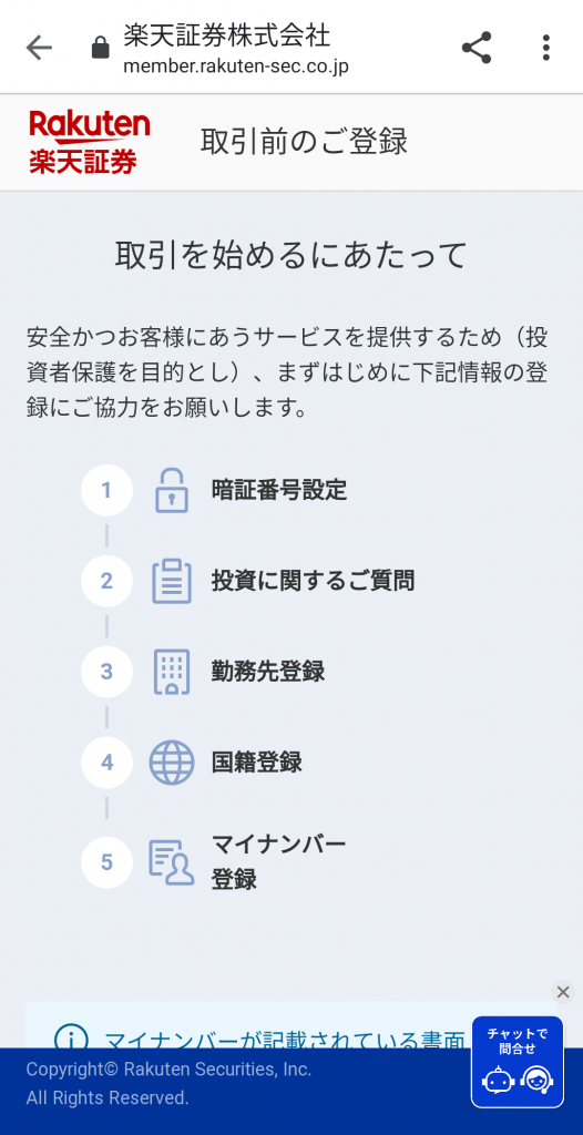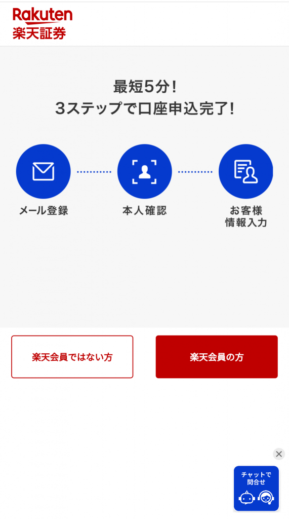 では、楽天証券の口座開設を行います。