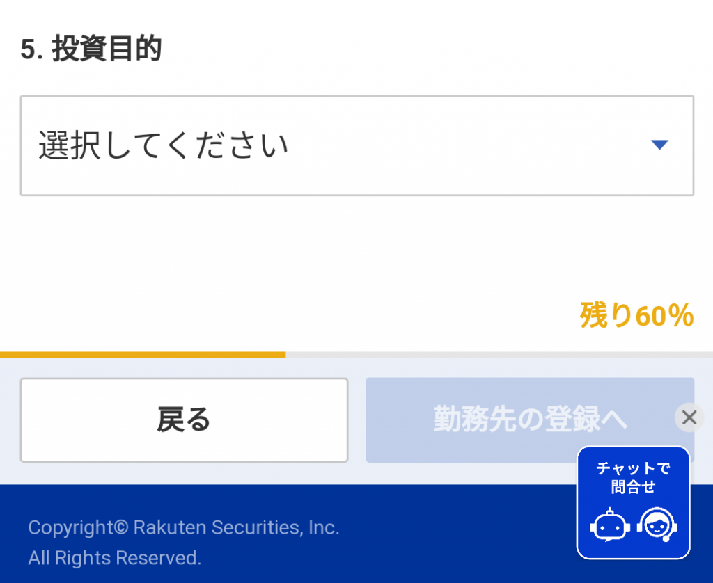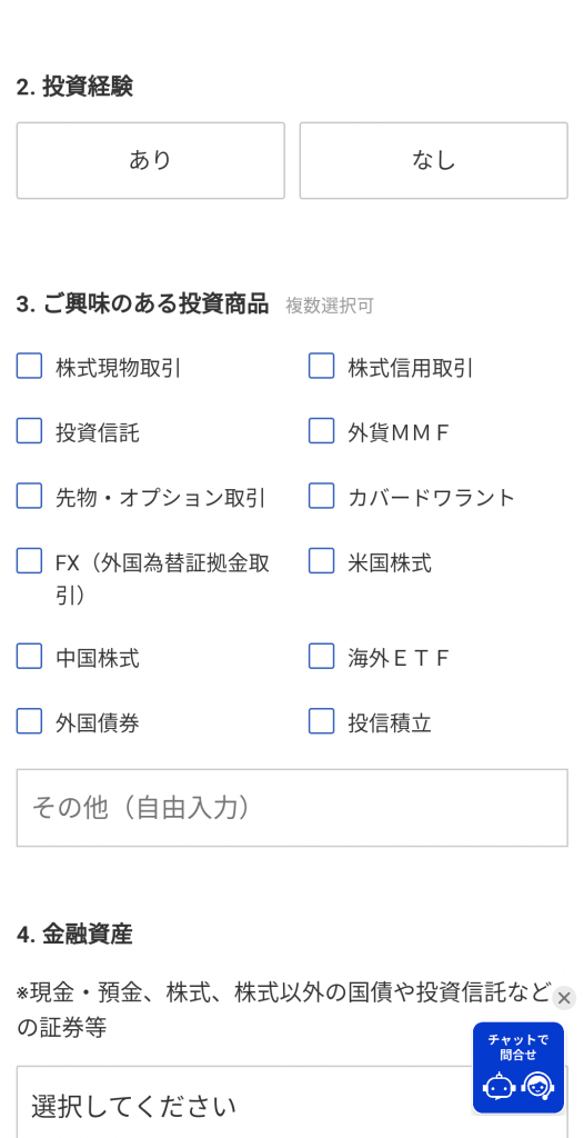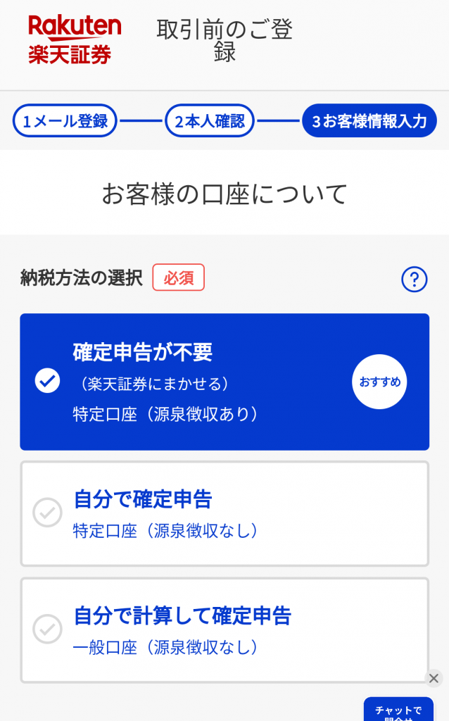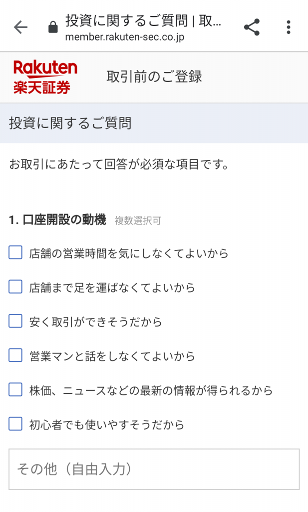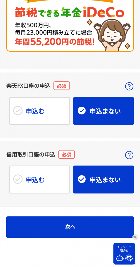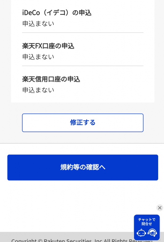 楽天銀行と同時申し込みを行うと、そのまま楽天証券の開設ページに移行します。