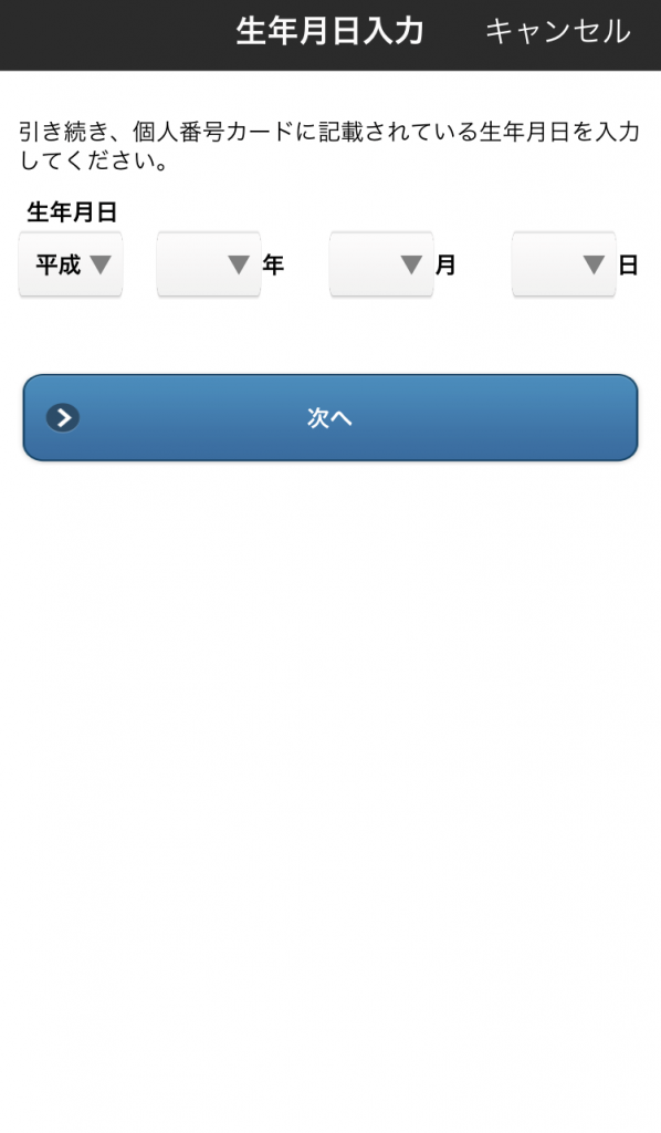 マイナンバーの撮影のあとは生年月日の入力を行います。