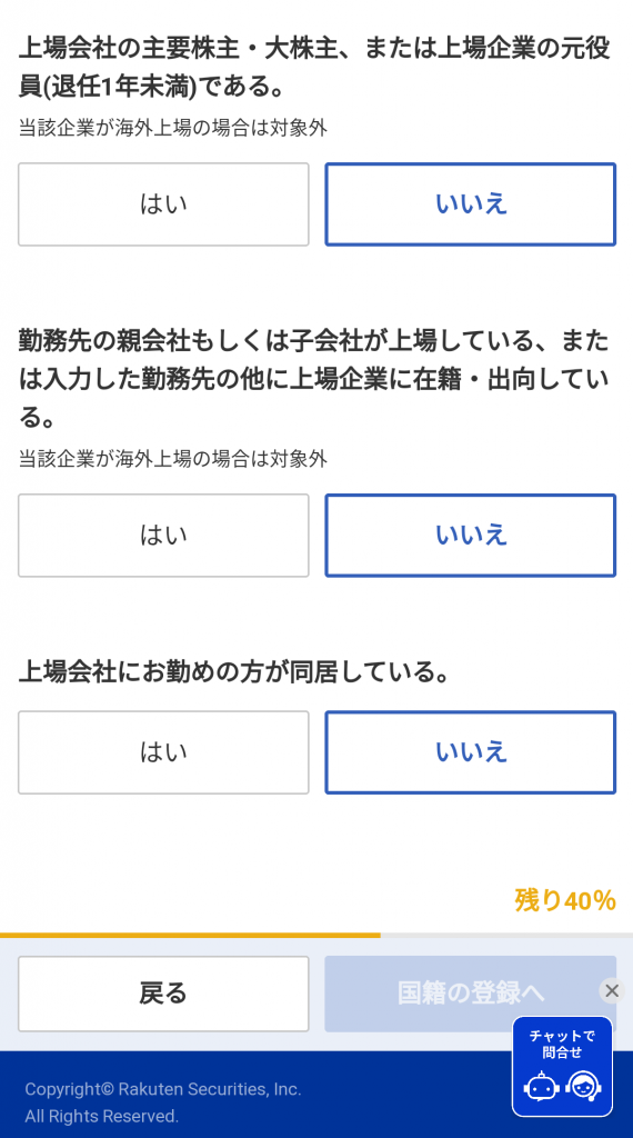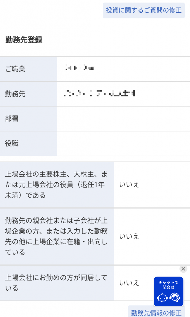会社名登録・自身やご家族の勤務先の上場の有無などの質問に回答します。
