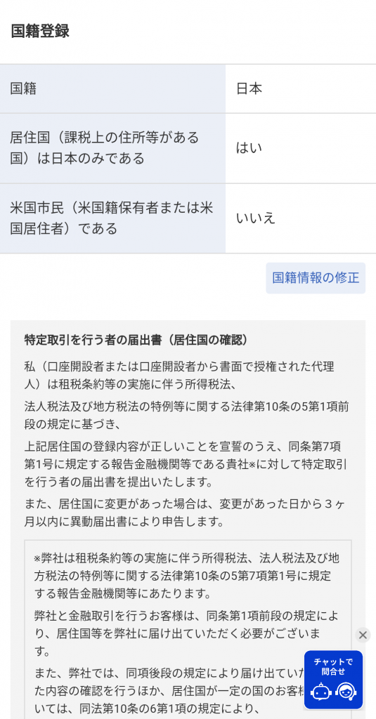 ④:国籍の登録をします。