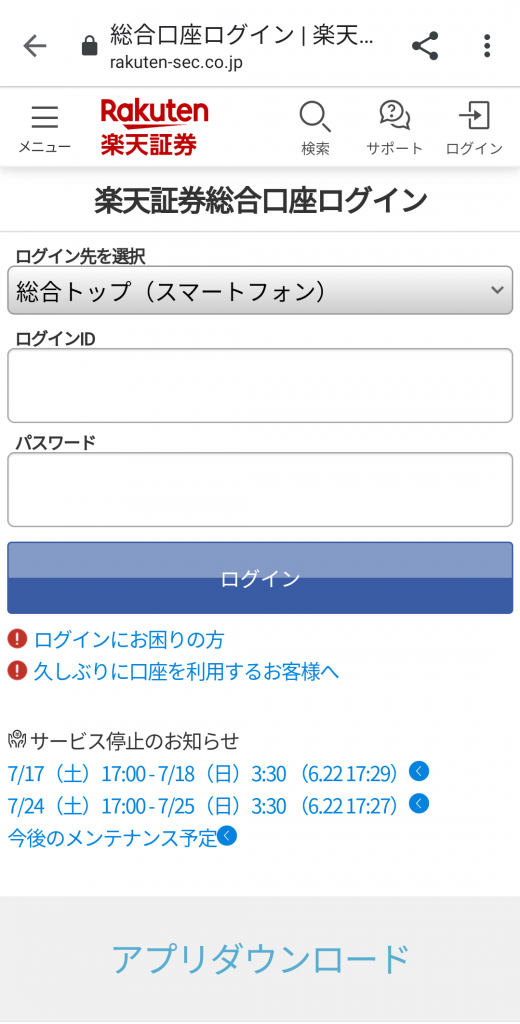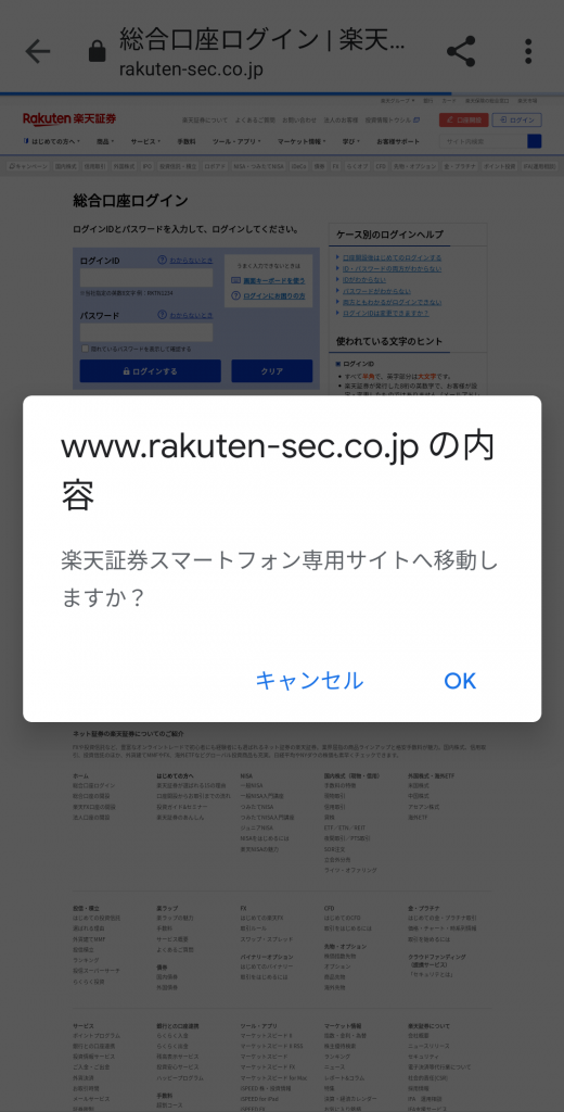 ②:メールに記載されているリンクから証券口座のログインページに移動します。