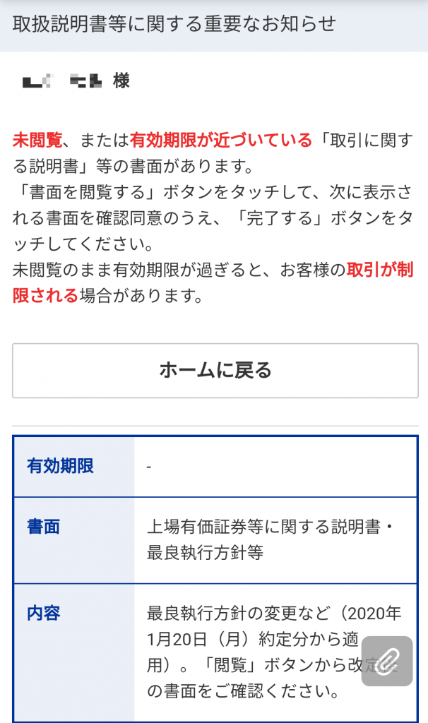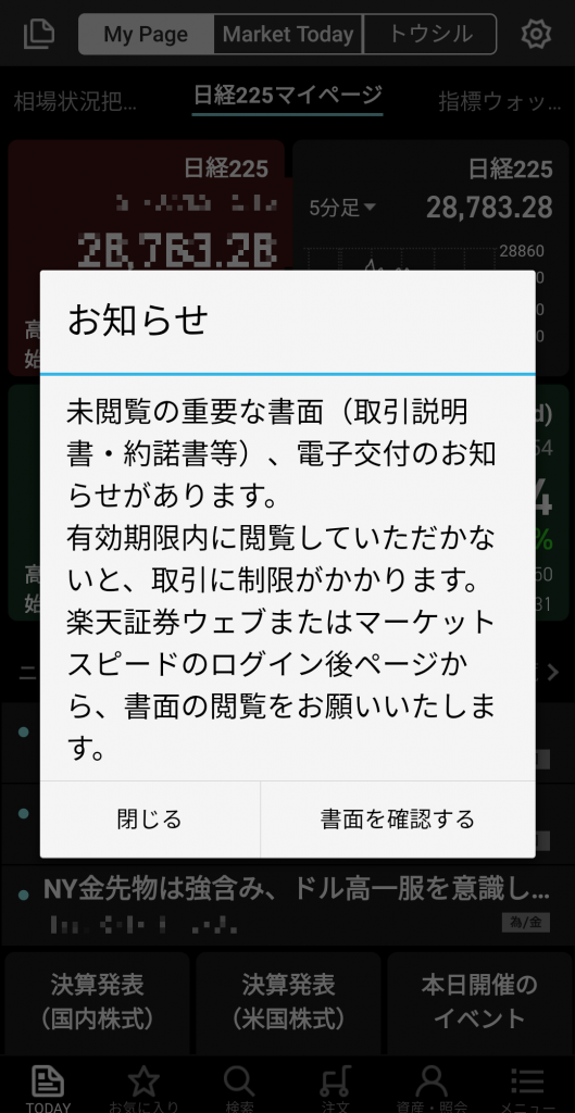 ⑥:アプリに再度ログインを行い、重要書面の確認を行ってください。