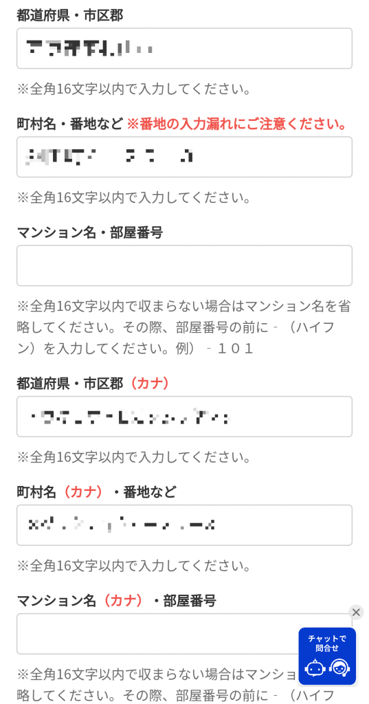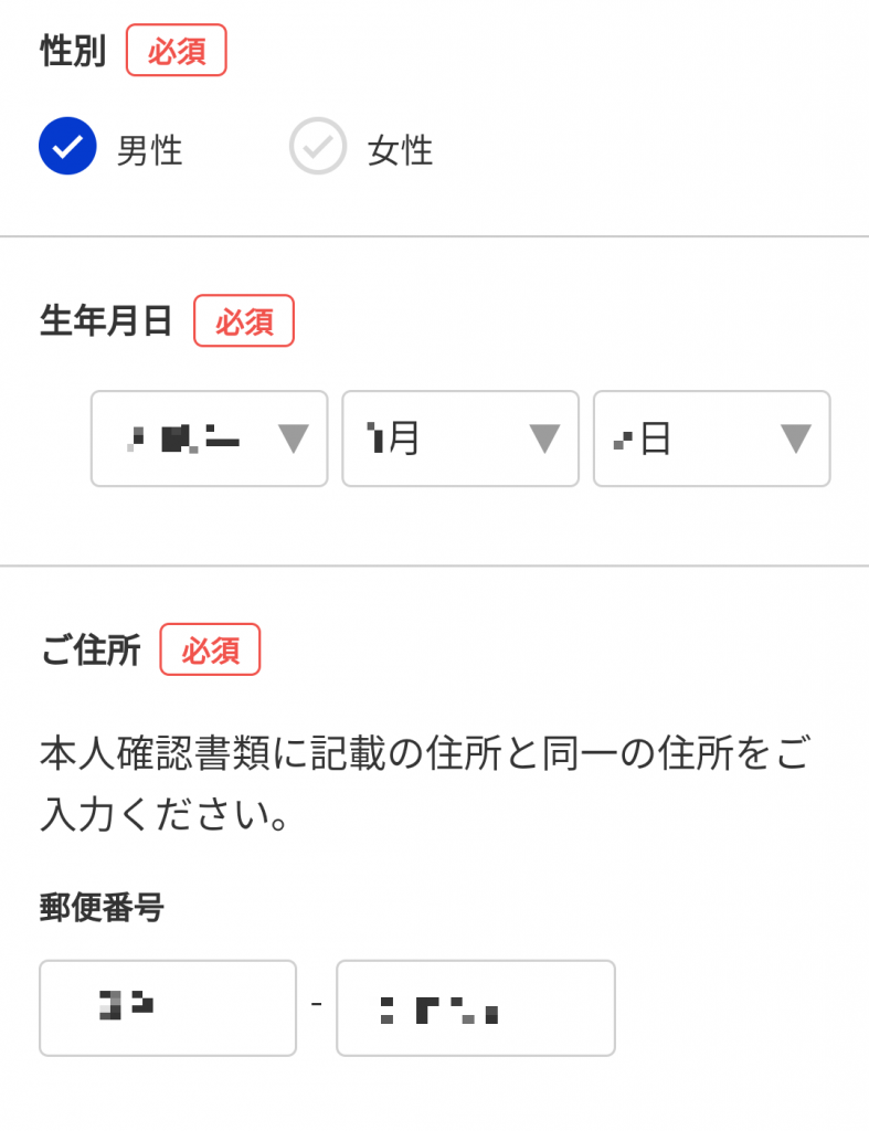 本人確認書類の撮影が終わった後は個人情報の入力を行います。