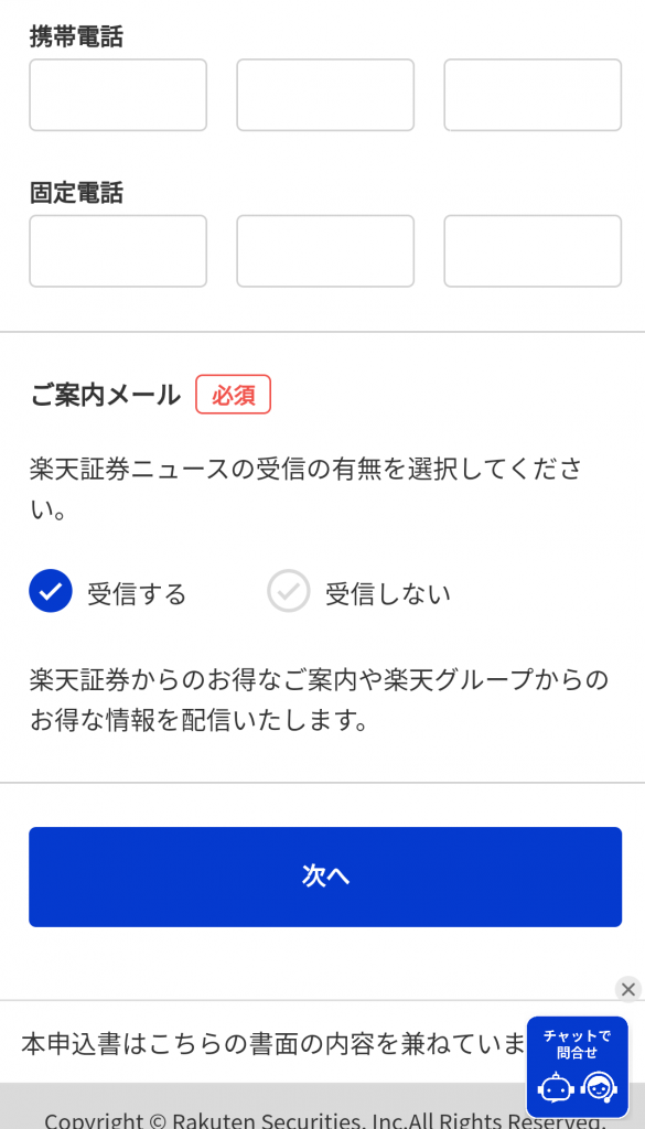 ③:電話番号の登録、楽天証券ニュースの受け取り有無を選択します。