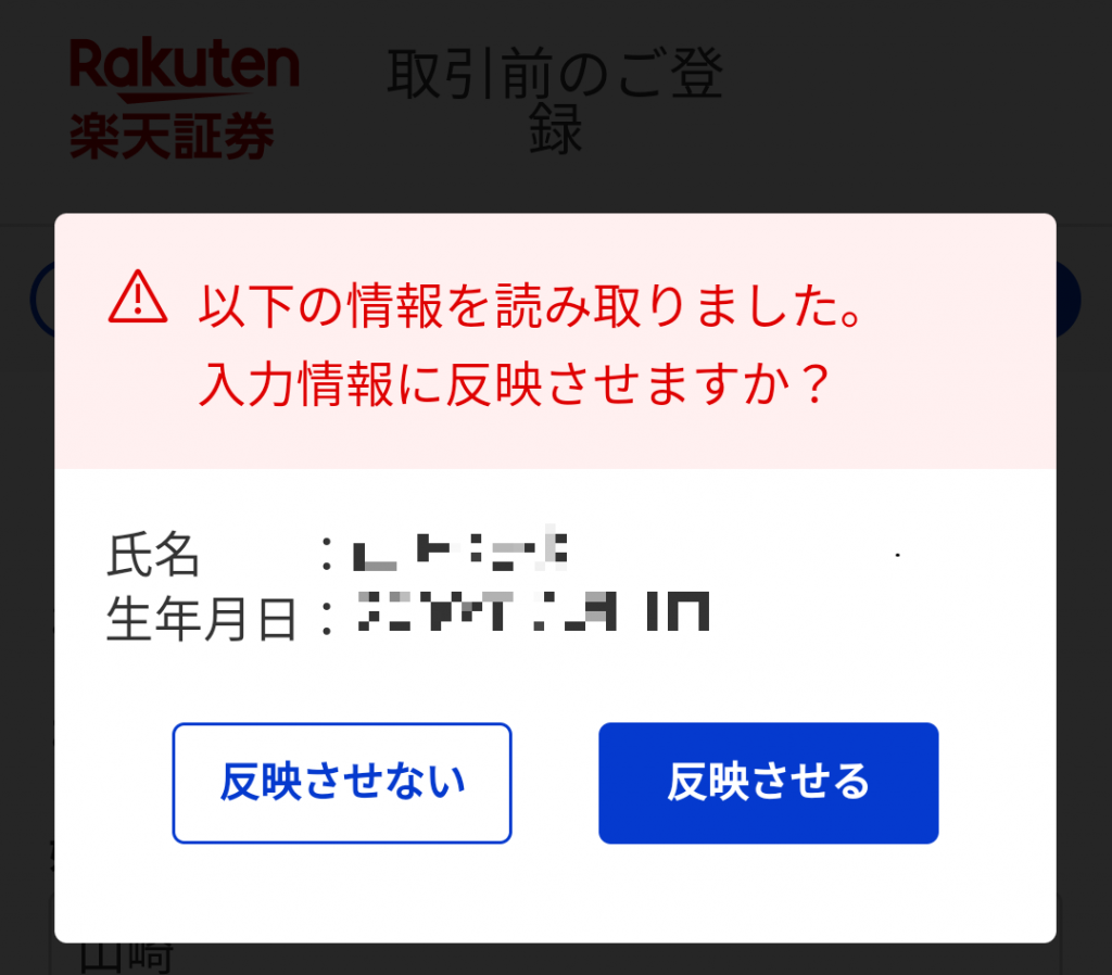ログインをすると『取引前のご登録』という画面に飛びます。