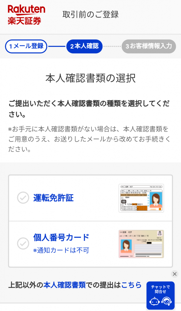 運転免許証か個人番号カードのどちらかを選択をします。