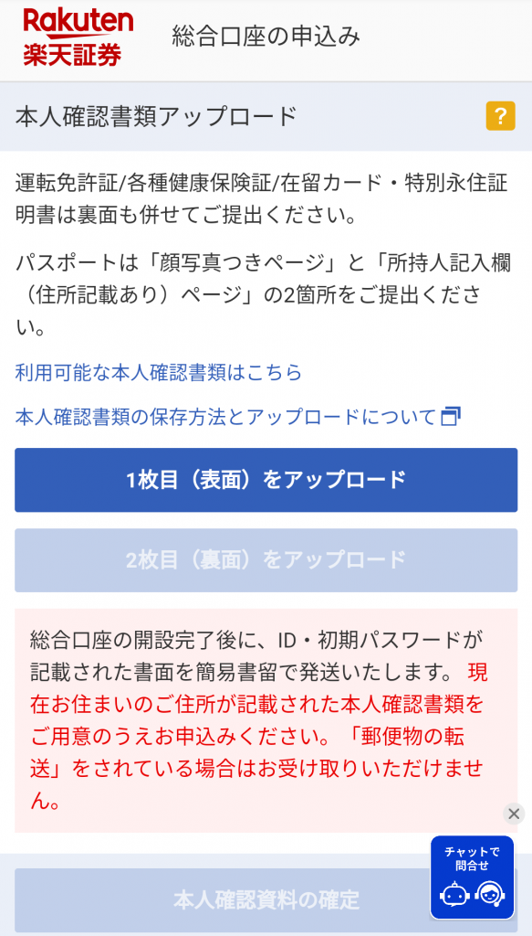 本人確認書類のアップロードを行います。