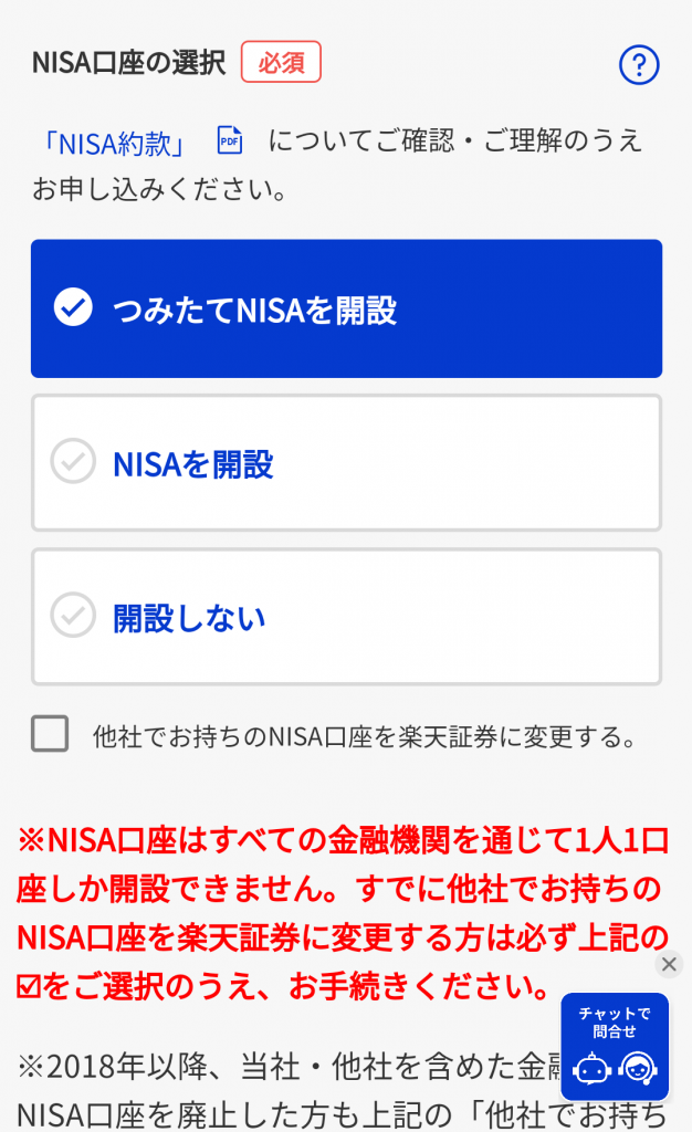 ⑤:NISA口座の開設をするか選択します。