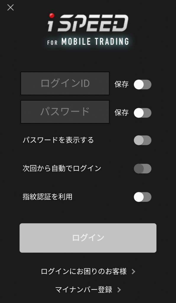 ②:口座開設完了メールに届いたログインIDと『ステップ3:お客様情報入力』の⑦で設定したパスワードを入力してログインします。